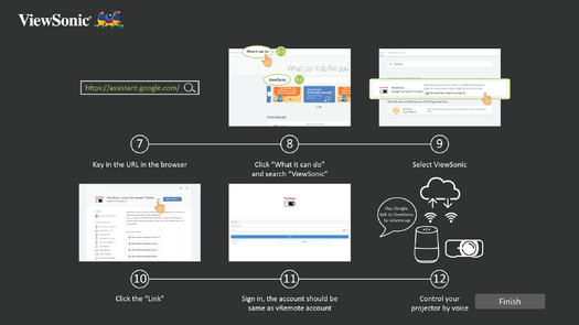 | “Hey Google, talk to ViewSonic to Home.” | Go to the Home Screen |
