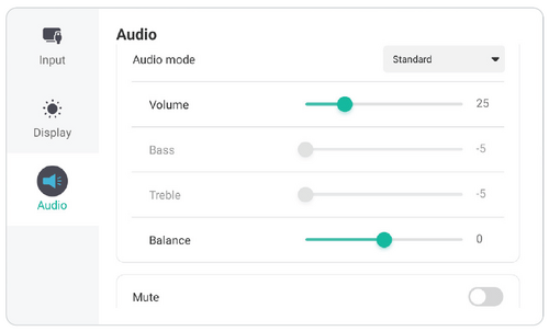 ) of the Control Bar to display the Input Settings menu. - Touch and drag the volume slider directly to adjust the value, or press VOL +/VOL - on the remote control to adjust. Additionally, pressing Mute (