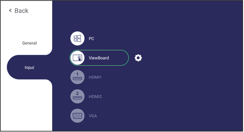 - NOTE: To adjust the settings of an input source, touch the setting icon next to the highlighted input source.