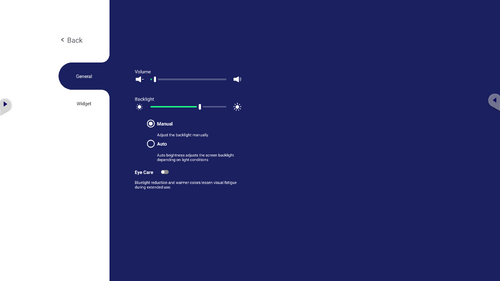 - Drag the brightness slider directly to adjust the backlight value, and/or touch On or Off to enable/disable the function.