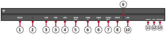 8 USB-B Maintenance port for external PC connection.
