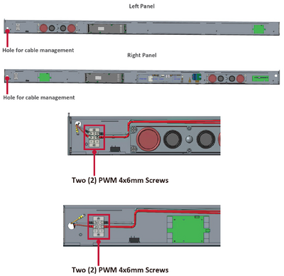 - You can also reroute the power cable at two positions for cable management. Loosen the two (2) PWM 4x6mm screws, pull the power cable out, thread the power cable through the hole and then fasten the screws tightly.