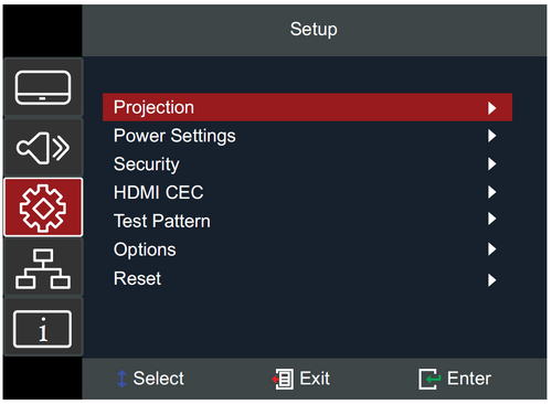 - NOTE: When resetting, the following settings will still remain: Zoom, Keystone Settings, Language, Projection, USB Power (Standby), Power Mode (Standby), High Altitude Mode, Security Settings, Network Settings, Light Source Hours Information.