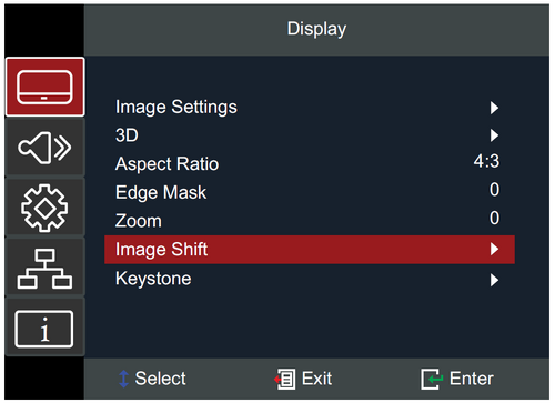 - NOTE: While adjusting the Four Corners, the Aspect Ratio, Edge Mask, Image Shift, and Zoom menus will be disabled. To enable them, reset the Keystone settings to default.