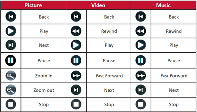 The media control bar buttons will appear on screen if a video, music, or photo file are selected to be opened.