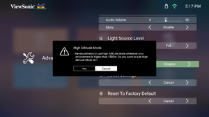| High Altitude Mode | It is recommended that you use High Altitude Mode when your environment is between 1,500-3,000 m above sea level, and a temperature between 5°C-25°C.
