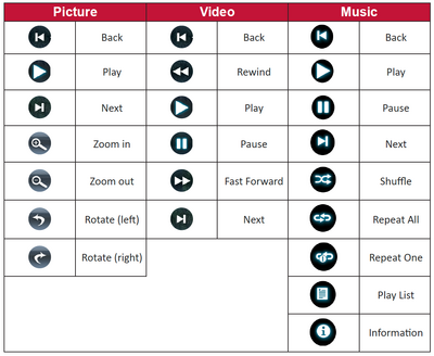 The Control Bar buttons will appear on screen if a video, music, or photo file are selected to be opened.