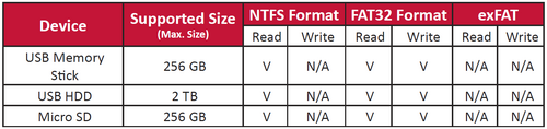 - Only use USB storage devices formatted with Windows FAT32 or NTFS file system.