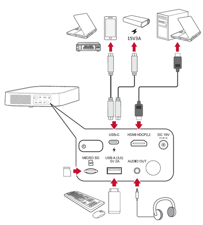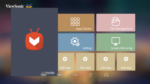 The projector will automatically search for input sources. If multiple sources are connected, press the Source button on the remote control to select the desired input, or press the Down button when at the Home Screen until the source list is displayed.