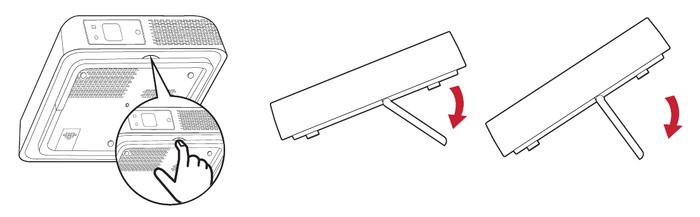 The projector is equipped with one (1) adjuster foot. Adjusting the foot will change the projector’s height and the vertical projection angle. Carefully adjust the foot to fine tune the projected image’s position.