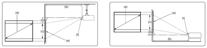 | (a) Screen Size | (b) Projection Distance | (c) Image Height | (d) Vertical Offset | ||||||