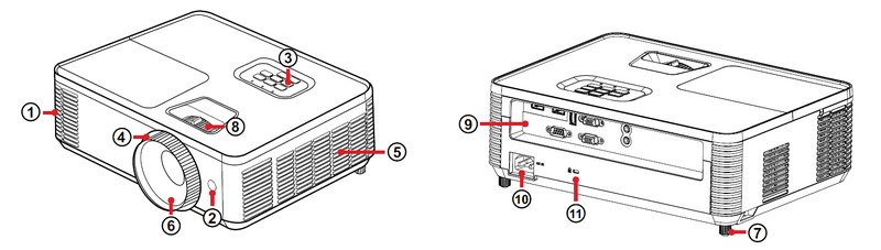 - NOTE: Do not block projector intake and exhaust vents.