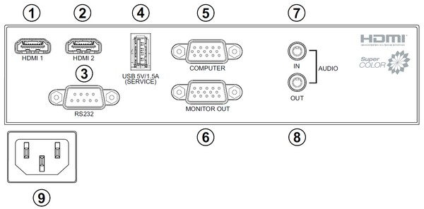 | 1 | HDMI 1 | HDMI port. |