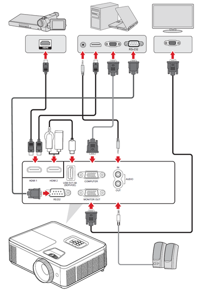 The projector will automatically search for input sources. If multiple sources are connected, press the Source button on the projector or remote control to select the desired input.