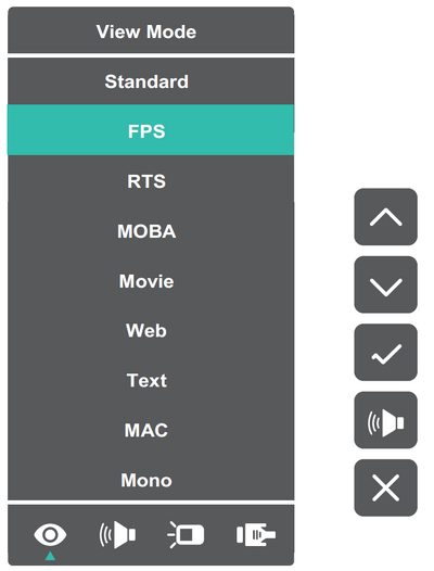 - When 1ms Mode is set to “On”, the following functions will be grayed out and disabled: Brightness, Advanced DCR, Eco Mode, sRGB, Response Time, DDC/CI Brightness adjustment.