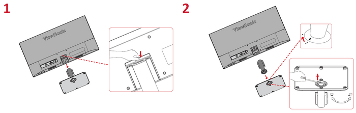 - Attach the mounting bracket to the VESA mounting holes at the rear of the monitor. Then secure it with four (4) screws (M4 x 10 mm).
