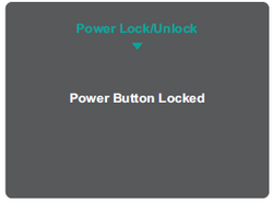 When the menu appears on the screen, continue holding the keys for 10 seconds to lock/unlock the Power button. If the Power button is locked, the below message will appear on the screen: |