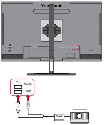 Connect the USB Type A and Micro USB cable of the ColorPro™ Wheel to the USB Type A and Micro USB port of the monitor.