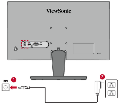 - Connect the power cord to the DC IN jack at the rear of the device.