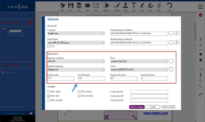 - Set the resolution, language, color, font and thickness. Define the thickness and size of the signature field.