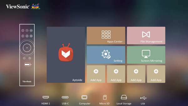 - NOTE: When pressing Power on the remote control, you can choose from four options: Turn Off, Restart, Bluetooth Speaker, and Turn light source Off.