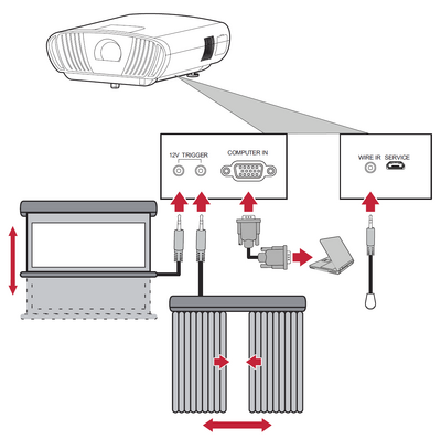 The X100-4K also supports several additional and convenient connection options such as: 12V Trigger for screens and curtains, VGA for computer connection, and Wired IR for extending the IR receiver range.
