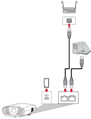 - Plug the RJ45 cable into the LAN port of the projector, then ensure the other end is plugged into your wired Internet source.