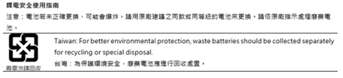- There is a danger of explosion if the battery is incorrectly replaced. Replace only with the same or equivalent type recommended by the equipment manufacturer. Discard used batteries according to the battery manufacturer’s instructions.
