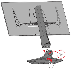 - Use the captured screw in the monitor stand’s base and secure it to the monitor stand’s neck.