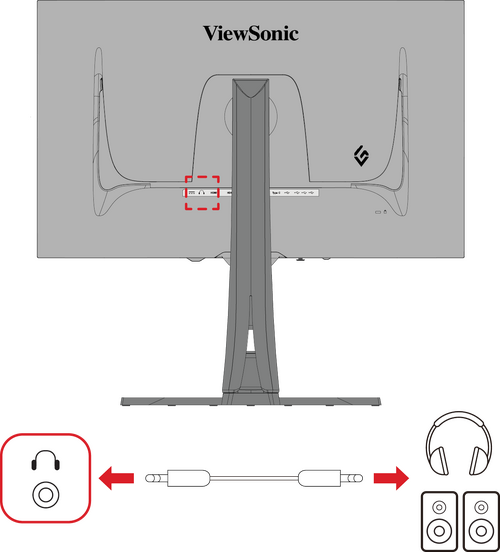 Plug the audio jack of the audio device into the Audio Out port of the monitor.