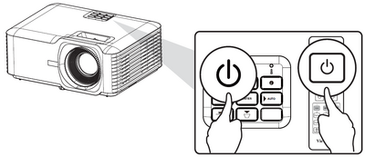 - Press the Power button on the projector or remote control and a “power off message” will appear.
