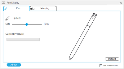 - Select the Pen tab to adjust Tip Feel and check the Current Pressure.