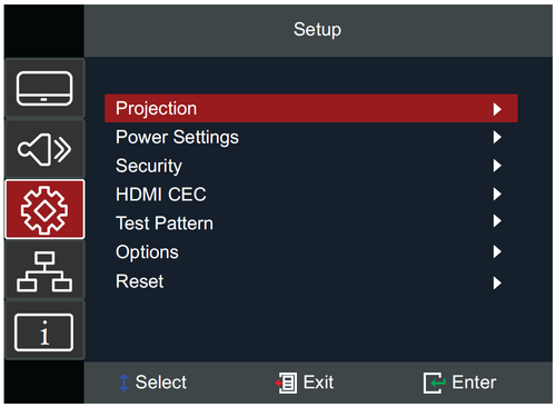 - NOTE: When resetting, the following settings will still remain: Language, Projection, High Altitude, Security Settings, Zoom, Keystone Settings.